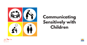 The document has been created to help the caregivers understand how they can sensitively communicate with children by being mindful of the child’s needs and emotions. It features various communication strategies that can be used in the field. It may also provide insights into the thought processes of children and the way they perceive the world around them.