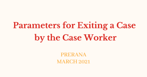 Exiting a case refers to a point in a case where all follow-ups have been ceased and the case files have been closed. The caseworker does not actively reach out to the client. However, the client is still a part of the larger Prerana universe and may reach out to Prerana in case of any assistance. This checklist, though not absolute, offers guidance while discussing the alternative of exiting cases.