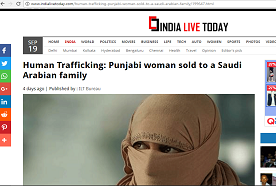 A 39 year old Punjabi woman from Gorsian village of Jalandhar was sold to a Saudi Arabian family as a slave for Rs. 3.5 lakh. The district police have booked a travel agent allegedly responsible for selling the woman under provisions of Immoral Trafficking Prevention Act.
