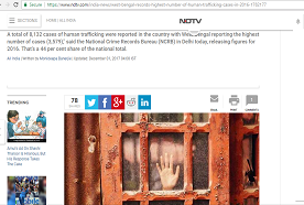 “A total of 8,132 cases of human trafficking were reported in the country with West Bengal reporting the highest number of cases (3,579),” said the National Crime Records Bureau (NCRB) in Delhi today, releasing figures for 2016. That’s a 44 per cent share of the national total.